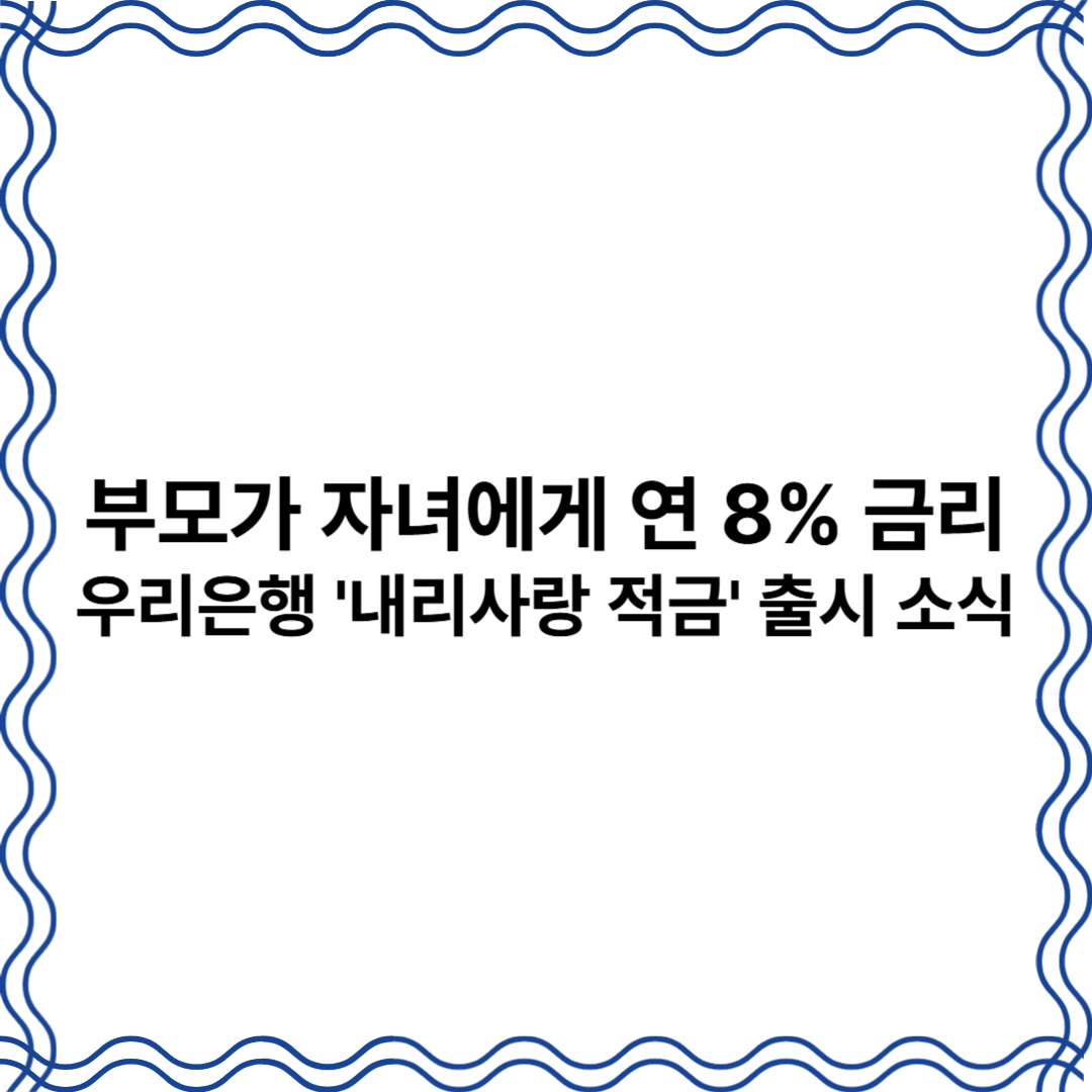 가정의 달을 맞아 부모가 자녀에게 특별한 금융 선물을 할 수 있는 기회가 마련되었습니다. 우리은행이 출시한 '우리 내리사랑 적금'은 부모세대가 자녀세대에게 연 8%의 고금리 혜택을 선물할 수 있는 이색 상품입니다.