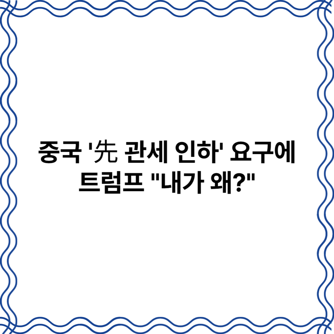 "트럼프, 중국 '선 관세 인하' 요구에 단칼 거절! '내가 왜?' 콧방귀 뀐 이유?"
