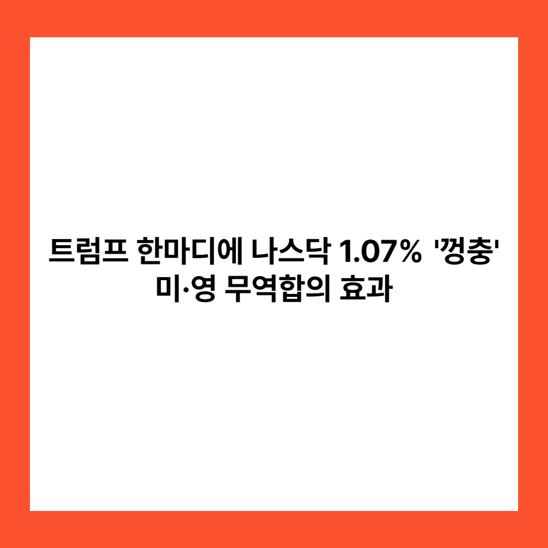 트럼프 "주식 사라" 외치자... 나스닥, 무역 합의 타고 1.07% ↑