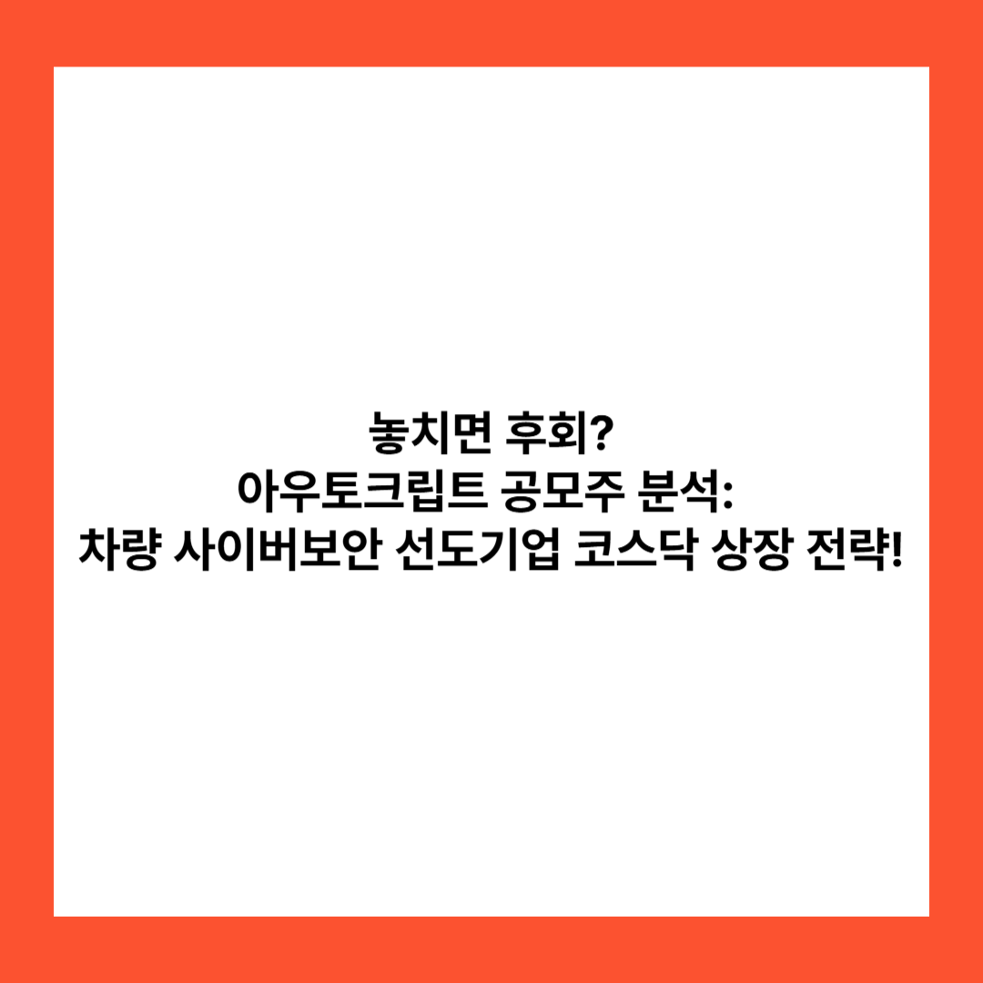 아우토크립트 공모주 청약 분석: 차량 사이버보안 선도기업의 코스닥 상장 전략