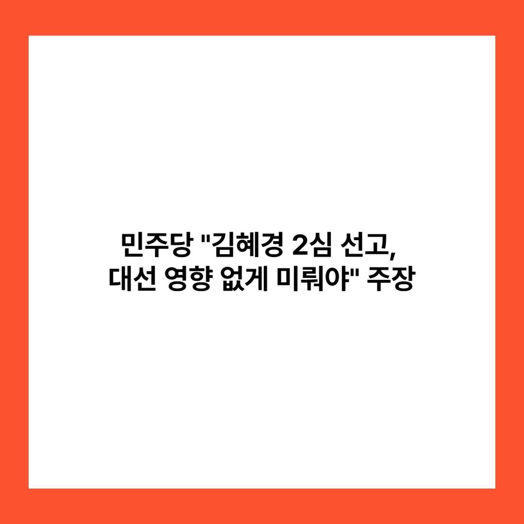 더불어민주당은 김혜경 씨의 2심 선고를 대선 이후로 연기하자는 주장을 펼치며, 이는 선거에 미치는 영향을 최소화하고자 하는 의도라고 밝혔습니다. 또한, 이재명 후보의 선거법 위반 사건이 대선 이후로 연기된 것과 같은 맥락에서, 공정한 선거를 위한 조치라고 강조했습니다.