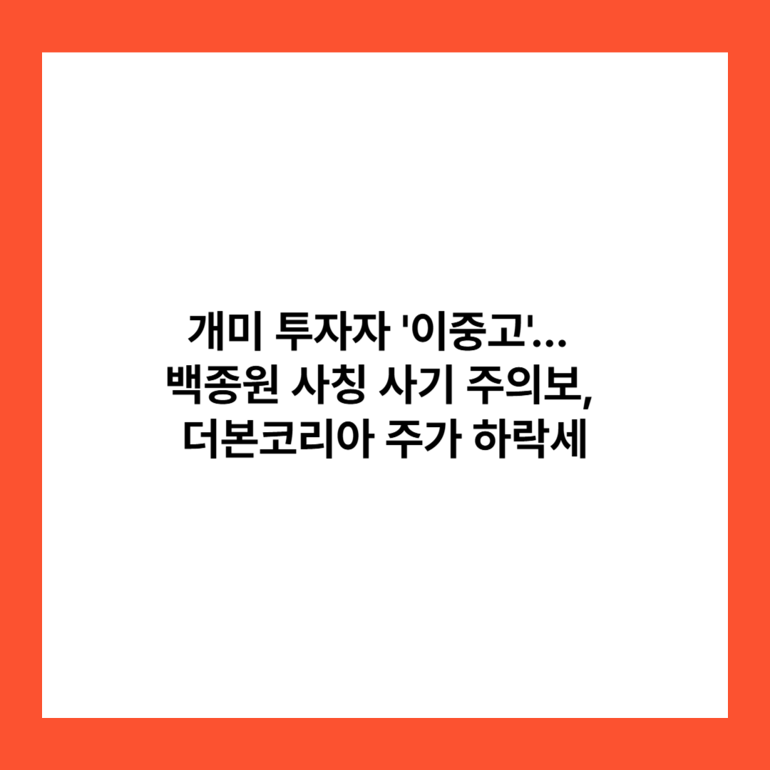 백종원 대표를 사칭한 투자 사기 사건은 유명 인사의 이미지를 악용한 대표적인 사례로, 투자자들의 주의가 필요합니다. 더본코리아의 경우, 상장 이후의 경영 전략과 주주와의 소통 강화가 주가 회복의 열쇠가 될 것입니다. 투자자들은 항상 신중한 판단과 철저한 정보 확인을 통해 피해를 예방해야 합니다.