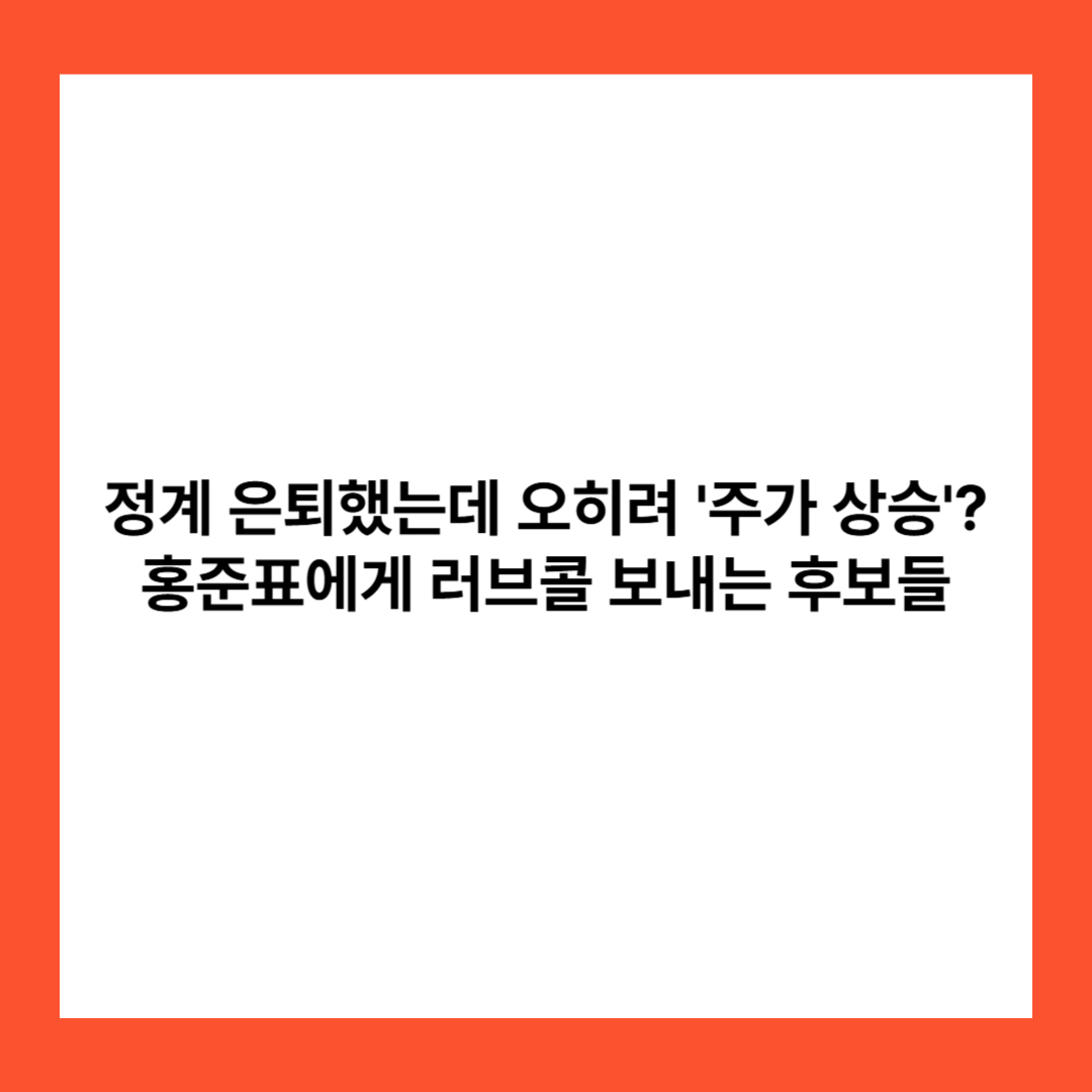 홍준표 전 시장의 정계 은퇴는 단순한 마무리가 아니라 정치의 또 다른 무대 전환일 수 있습니다. 그의 메시지와 존재감은 여전히 정치판을 흔들고 있으며, 향후 행보에 귀추가 주목됩니다.